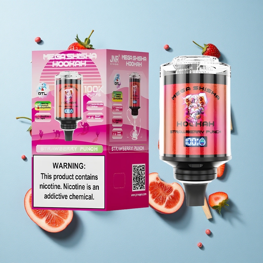 Aardbei Punch JNR Mega Shisha Hookah 100K Puffs vape groothandel België Type-C opladen 60ml