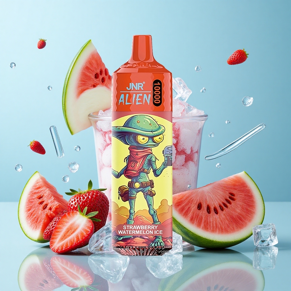 Aardbei Watermeloen IJs JNR Alien 10000 Puffs vape groothandel België met 850mAh batterij en RGB LED
