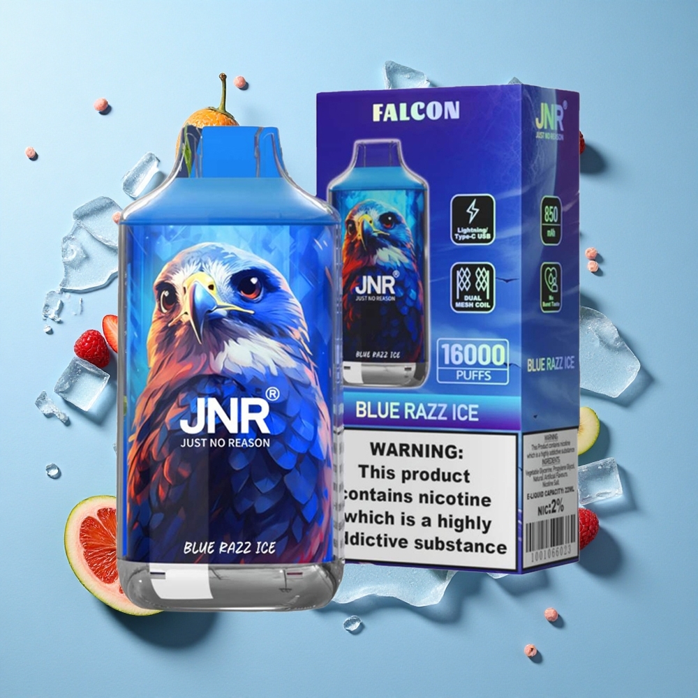 Blauwe Framboos Ice JNR Falcon 16000 Puffs Dual Mesh Coil vape groothandel België