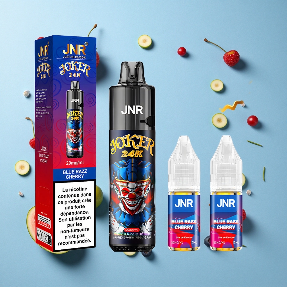 Blauwe Framboos Kers JNR Joker 24000 Puffs vape groothandel België 2+10ml Navulbaar & Type-C Opladen