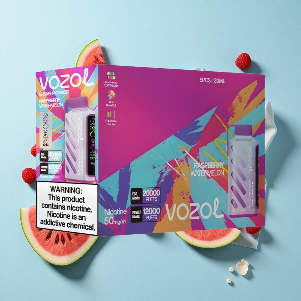 Framboos Watermeloen VOZOL Gear Power 20000 Puffs (20mL, 5% Nicotine) vape groothandel België Dual Mesh Coil