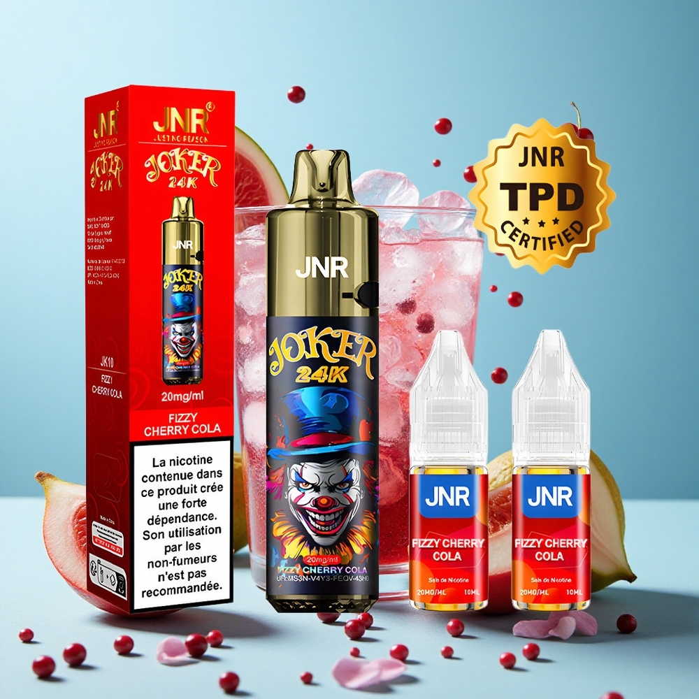 Frisse Kers Cola JNR Joker 24K Puffs vape groothandel België 2+10ml Navulbare Pod Zichtbaar Vloeistofniveau