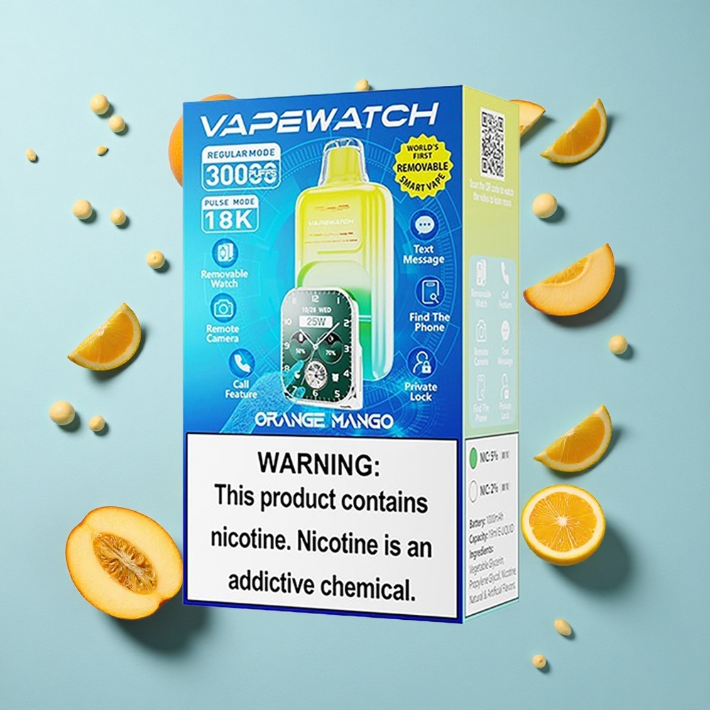Oranje Mango JNR Vape Watch 30000 Puffs 19mL vape groothandel België Dual Mesh Coil