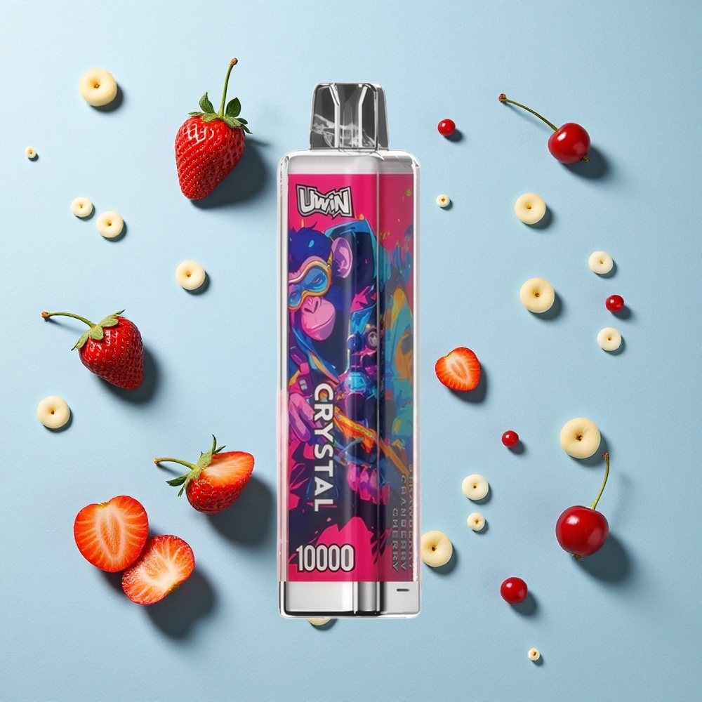 Aardbei Cranberry Kers UWIN Crystal 10000 Puffs vape groothandel België met 18ml vloeistof en RGB-verlichting