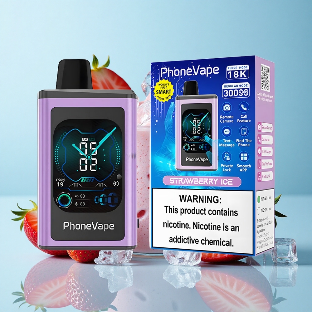 Aardbei IJs JNR PhoneVape 30000 puffs vape groothandel België met 850mAh Type-C Oplaadbare Batterij & Turbo Modus