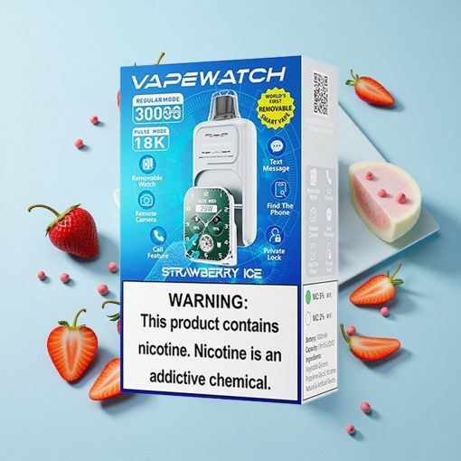 Aardbei IJs JNR Vape Watch 30000 Puffs Wegwerp Vape 19mL vape groothandel België Dual Mesh Coil