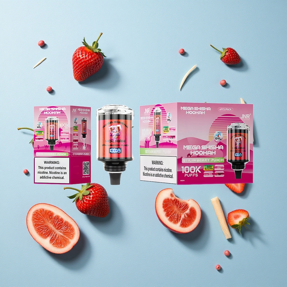 Aardbei Punch JNR Mega Shisha Hookah 100K Puffs vape groothandel België Type-C opladen 60ml