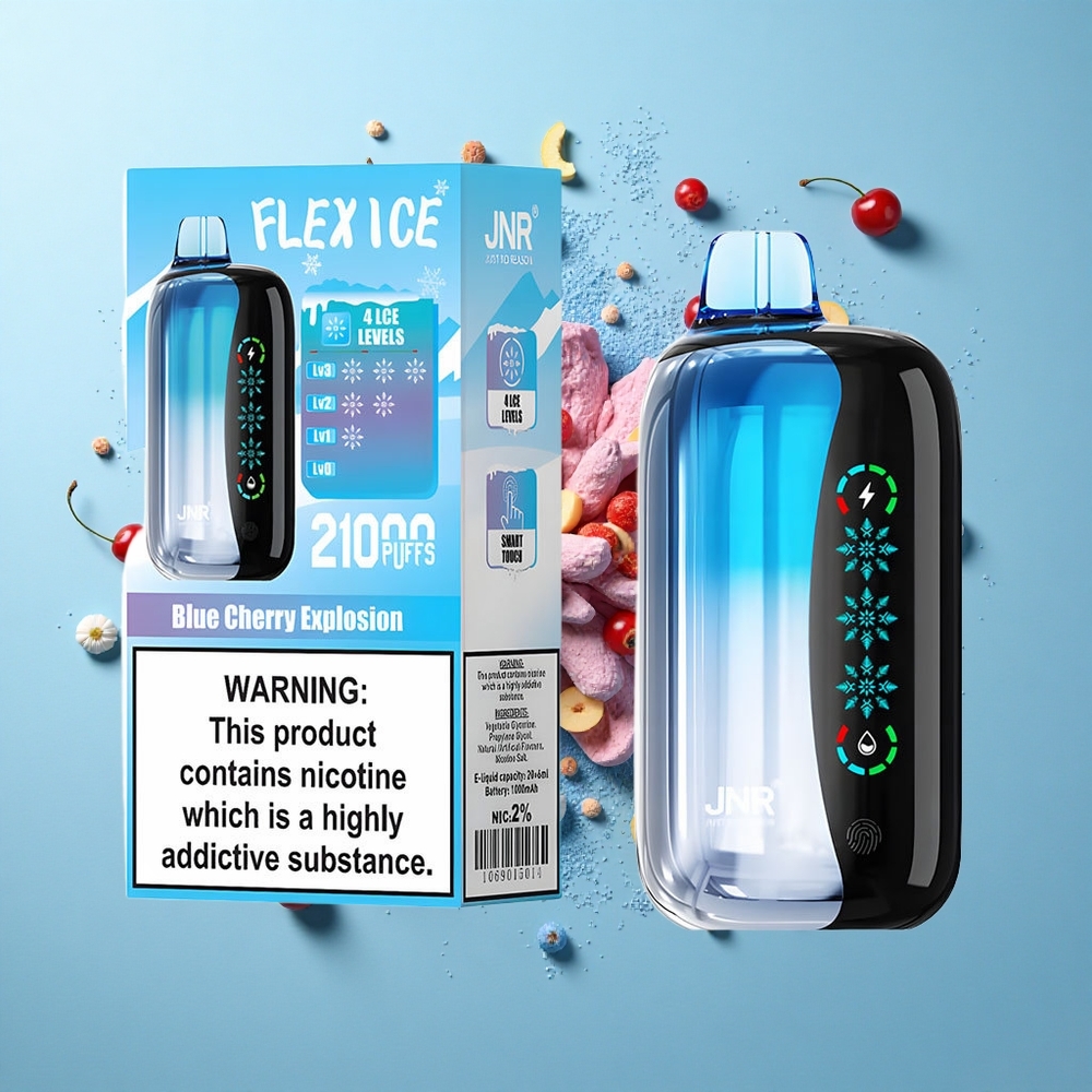 De JNR Flex Ice 21000 Puffs is een hoogwaardige disposable vape met indrukwekkende prestaties en geavanceerde functies. Ideaal voor vape groothandel België en consumenten die op zoek zijn naar duurzaamheid en aanpasbaarheid.