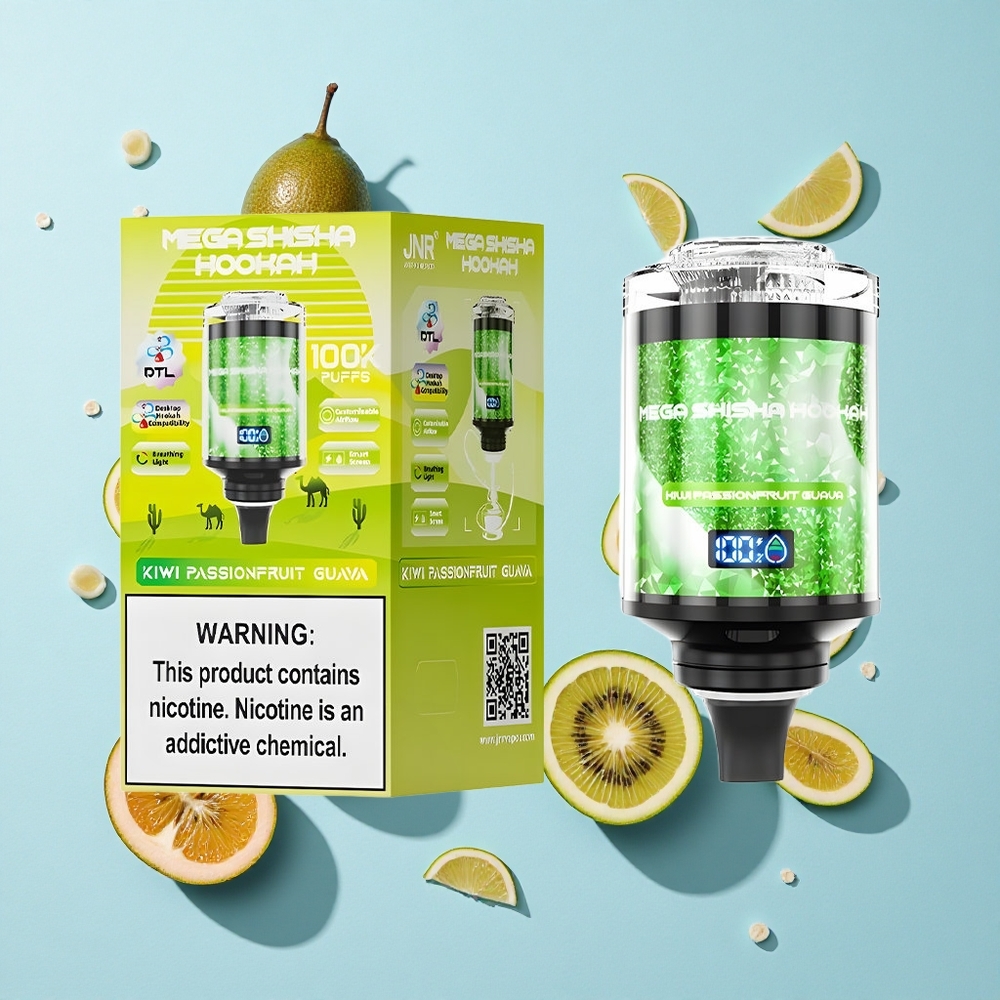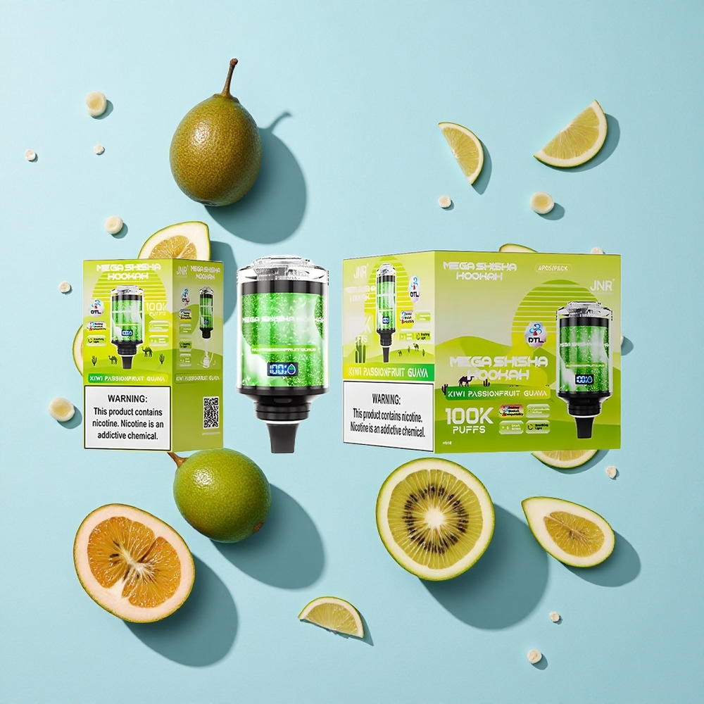 Kiwi Passievrucht Guave JNR Mega Shisha Hookah 100K 100000 puffs vape groothandel België 60ml e-Liquid Capaciteit