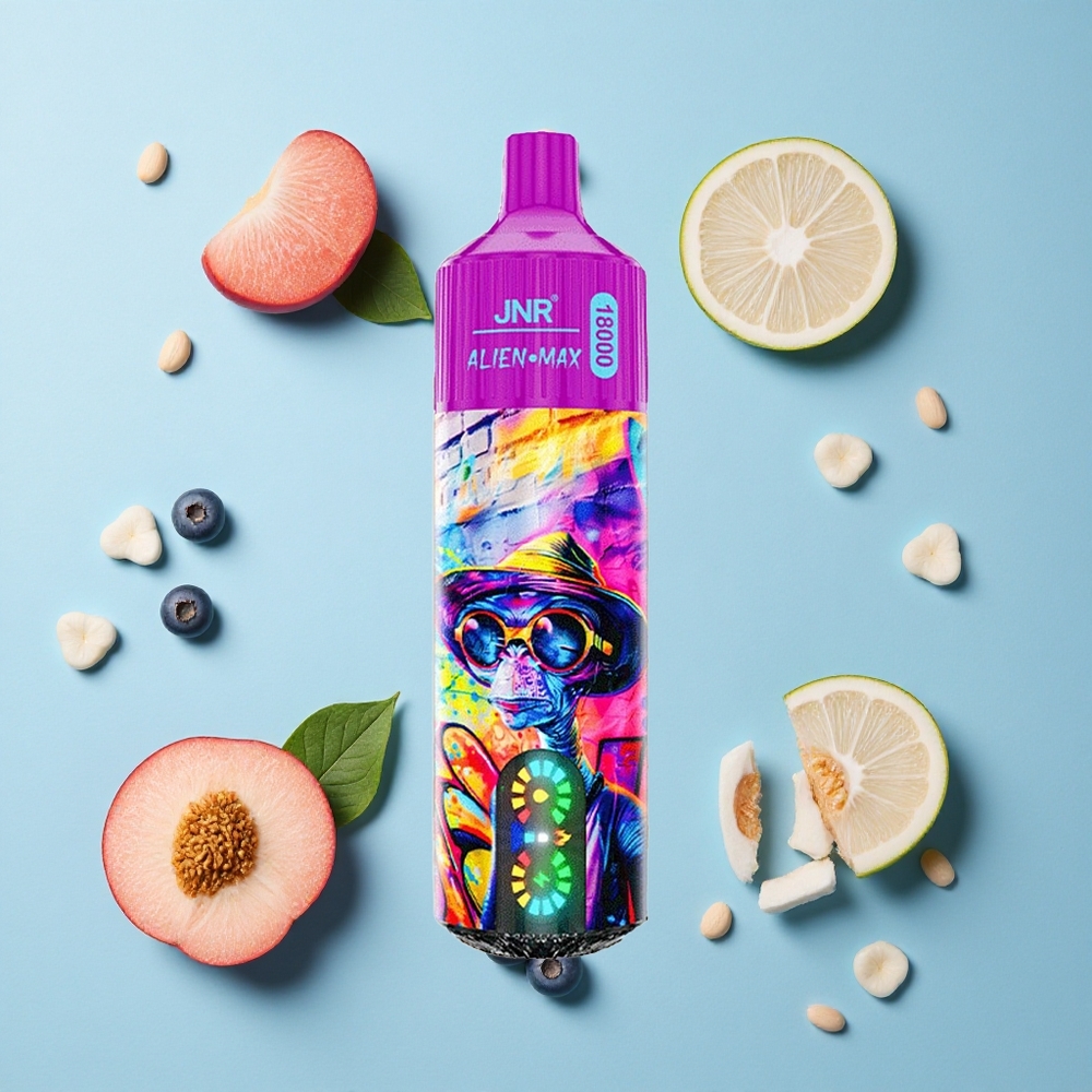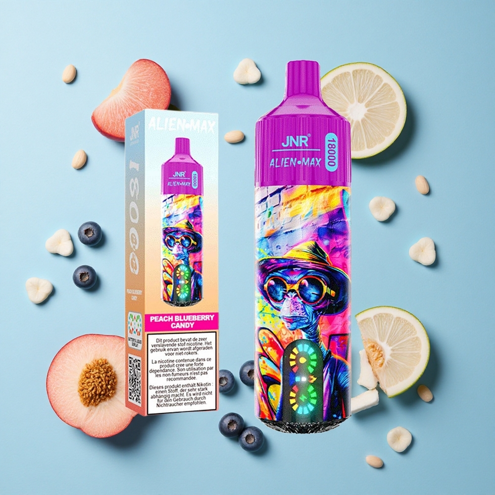 Perzik Blauwe Bes JNR Alien Max 18000 Puffs Dual Mesh Coil vape groothandel België Type-C Quick Charge