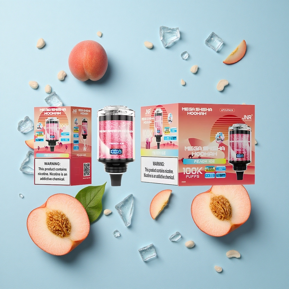Perzik IJssmaken JNR Mega Shisha Hookah 100K 100000 puffs vape groothandel België Desktop Compatibility 2200mAh & Type-C